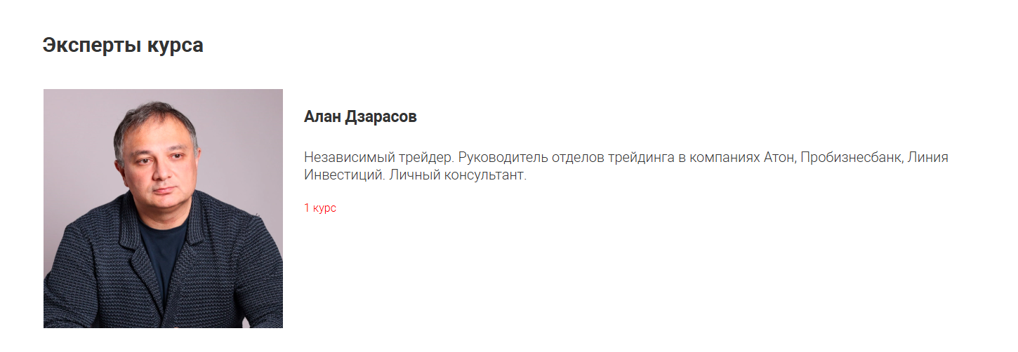 Ведет его Алан Дзарасов, заявленный как независимый трейдер и один из экспертов школы. На сайте школы и в социальных сетях, включая ТГ и ВКонтакте, 13+ тысяч подписчиков, которые являются частью комьюнити инвесторов.