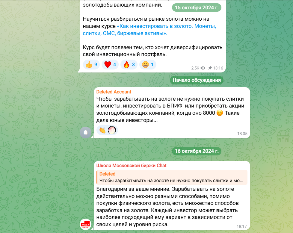 Обзор проекта в ТГ “Как инвестировать в золото Школа Московской Биржи”: курс, его условия и отзывы студентов