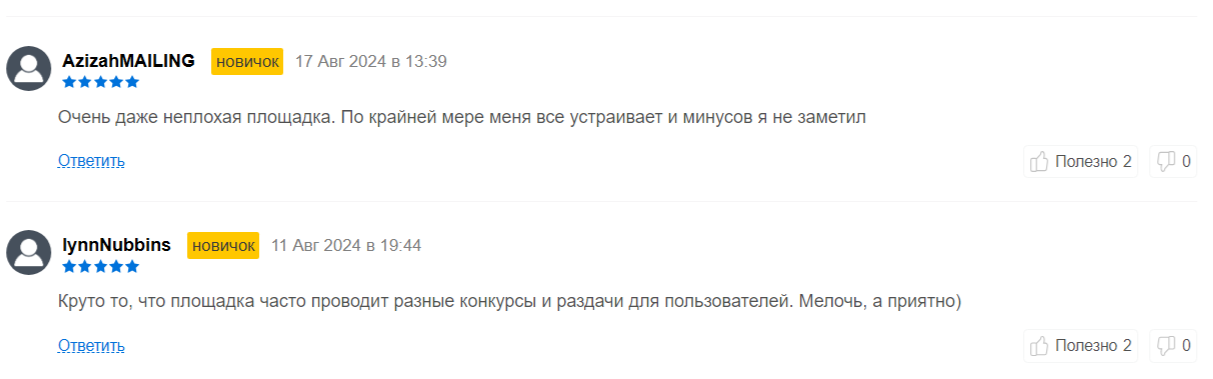 За все время платформа получила много отзывов. В основном пользователи довольны работой криптоплощадки. Они отмечают удобный функционал, минимальные комиссии, быстрое пополнение и вывод средств.