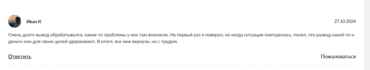 Однако некоторые клиенты сталкиваются с проблемами при обработке операций и задержкой в выводе средств.