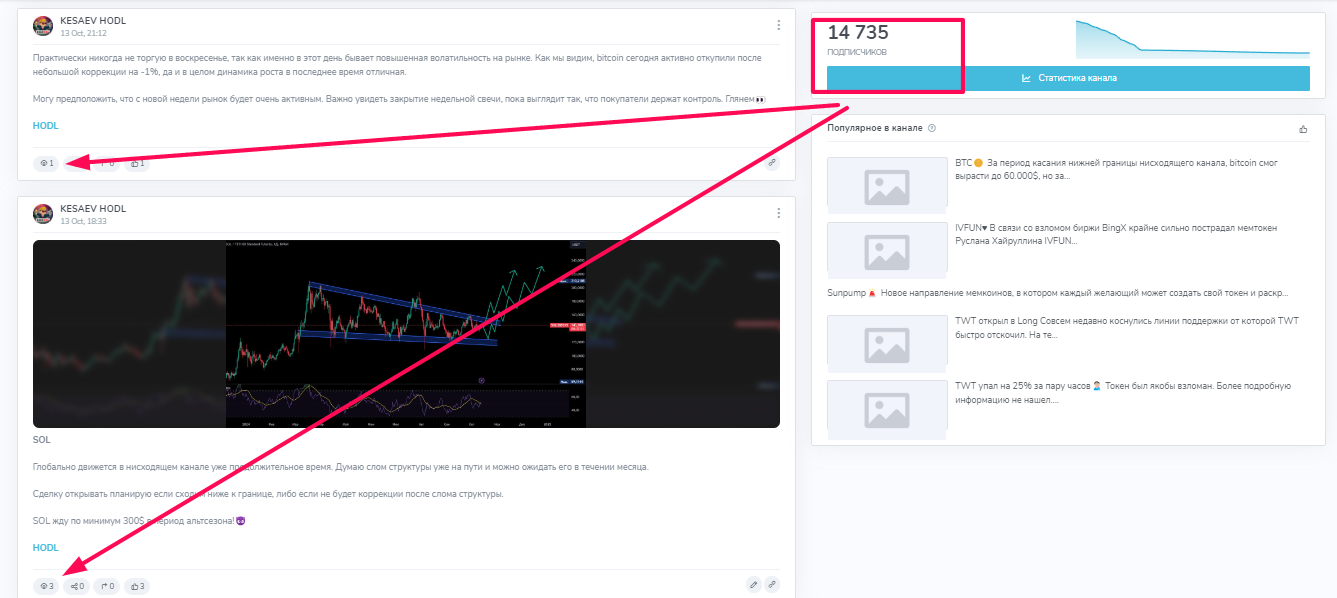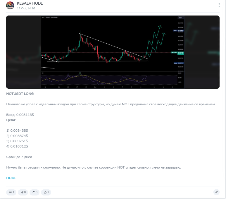 В канале Дмитрия Кесаева о крипте есть сигналы, в которых трейдер дает: