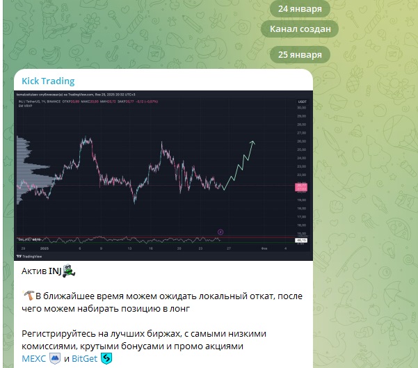TG-канал Kick Trading создан 24 января 2025 года. Он не имеет никакого отношения к бирже KickEX или видеостриминговому сервису Kick com. Очевидно, что это название выбрано для создания ассоциативного хайпа и быстрого продвижения.