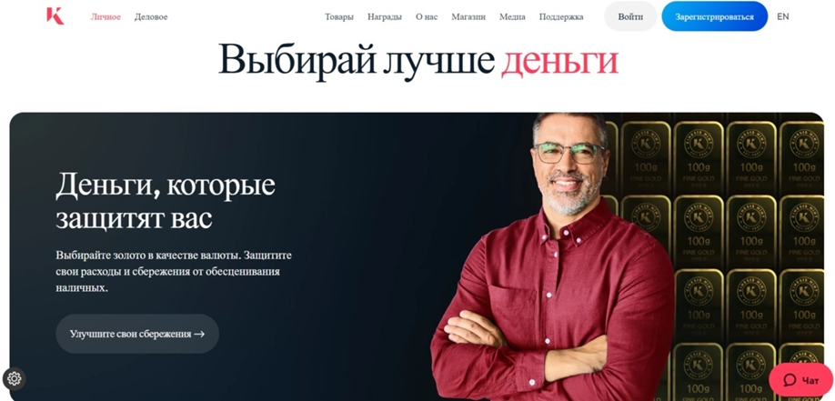 - доступна покупка токенов KAU и KAG через сервис с помощью классических валют;