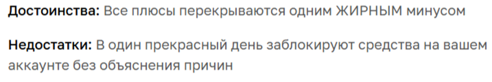 - отсутствие демо-аккаунта;