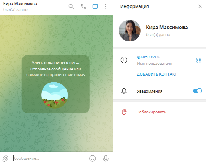При проверке деятельности Киры Максимовой нам была доступна только ссылка на ее личную страницу @kira936936. В описании своего профиля девушка не стала оставлять адрес на свой канал и писать даже краткую информацию о себе. Непонятно, кем она является, какой имеет опыт работы и чем может быть полезна аудитории. Стоит заметить, что данный аккаунт был в сети давно.