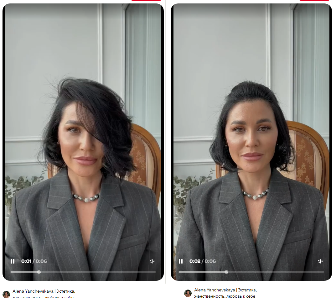 Оказалось, что эта картинка не фото, а кадр из ролика, автором которого является инфлюенсер Алена Янчевская. В этом видео девушка показывает прически на короткие волосы.