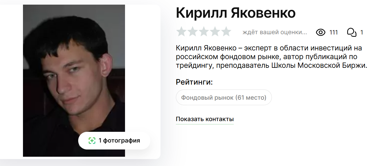 Сведений об инвесторе и трейдере немного. Известно, что Кирилл Яковенко является экспертом фондового рынка и активно зарабатывает в сфере инвестирования. За время деятельности он смог добиться больших высот и вел активную преподавательскую деятельность в Школе Московской Биржи.