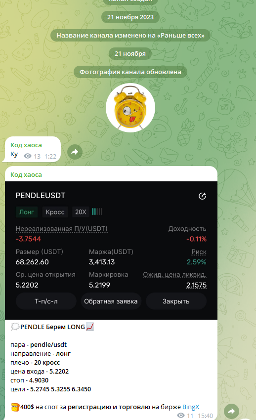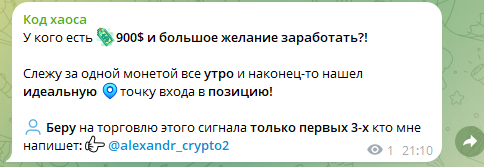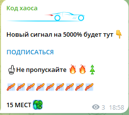 Код хаоса – Тг-канал, на котором пользователям предлагаются бесплатные и платные сигналы. В качестве главного трейдера выступает некто под ником Эрик Джоунс (ранее Эрик хаос). Он убеждает потенциальных клиентов в своем профессионализме и обещает высокий заработок на крипте. Мы решили проверить, насколько безопасно сотрудничать с проектом. Результаты проверки в обзоре.