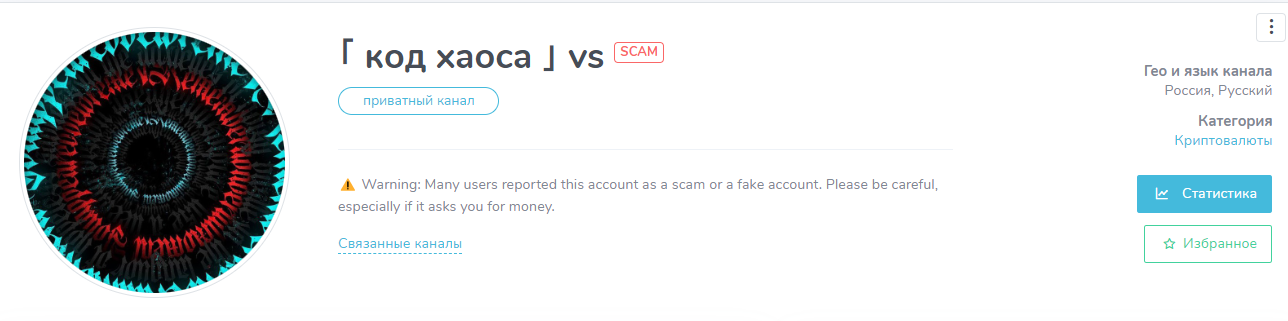 Примечательно, что Тг-канал с таким названием и аватаром уже существовал, но был удален. Зато информация о нем сохранилась на сервисе TGStat. Вероятно, проект получил отметку scam от Тг, а когда решение с добавлением пометки «vs» не помогло, администрация перешла на другое сообщество.