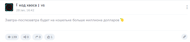 Тг-канал Код хаоса (Ranshe Vsekh) начал работу в ноябре 2023 года. На момент написания обзора на него подписано почти 3 тысячи пользователей, при этом публикации не набирают и 10 просмотров. Вероятно, администрация проекта использовала накрутку.