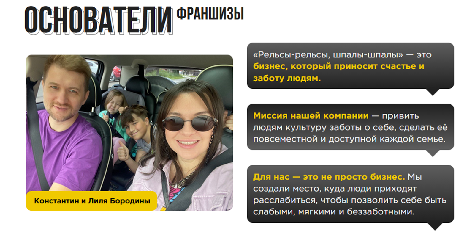 • заявления о владении сетью СПА-салонов в Казани под названием Рельса не соответствуют действительности (владельцами франшизы является семейная пара Бородиных);