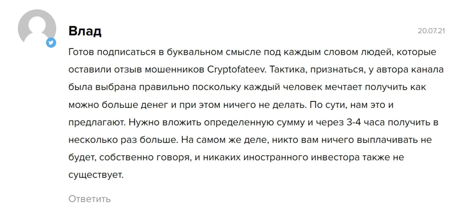 Cryptofateev Отзывы (3)