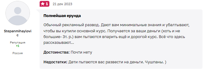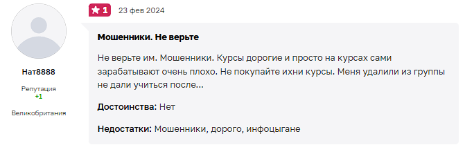 Вдобавок люди утверждают, что на один поток команда набирает сразу много участников, из-за чего уделять время вам они будут по минимуму. Полезной или инсайдерской информации от них ждать не стоит, ведь практических навыков у них нет, а все бонусы и обещания о заработке пустые слова. Вдобавок команда MoneyFest на протяжении всего дешевого курса пытается продать вам более дорогостоящее обучение, что заставляет сомневаться в их компетентности.