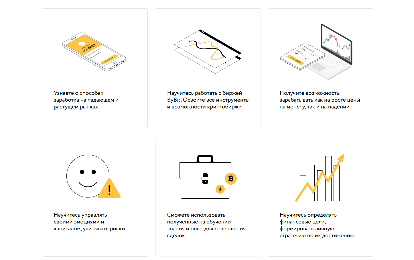 Среди навыков, которые вы должны освоить на курсе Крипто Инвестиции Успешный Старт 2025, команда отмечает возможности заработка на разных стадиях рынка, работу с биржей ByBit и построение грамотной стратегии с учетом риск менеджмента. При этом подробную информацию о курсе, включая модули и темы уроков, получить нельзя, из-за чего оценить полноту программы невозможно.