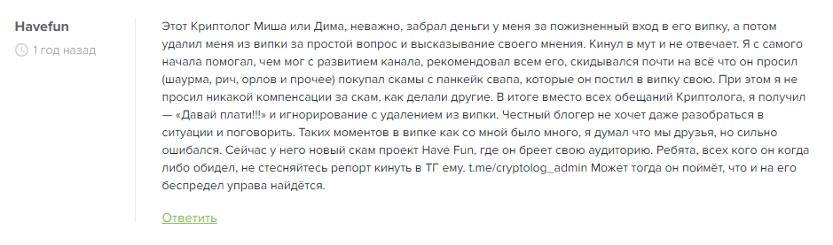 Отзывы о Телеграм-канале Cryptolog: оценка проекта Криптолог Trade, скам или нет