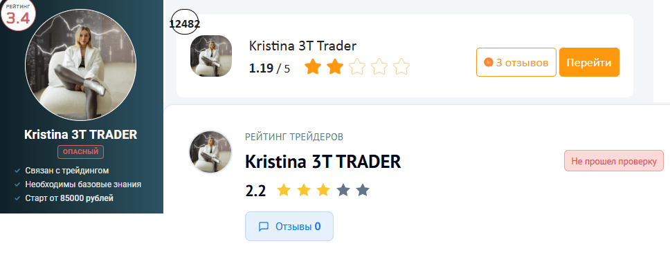 • С учетом отзывов о канале «Kristina | 3T Trader», о проекте складывается негативное впечатление, а также не исключаются прецеденты обмана людей.