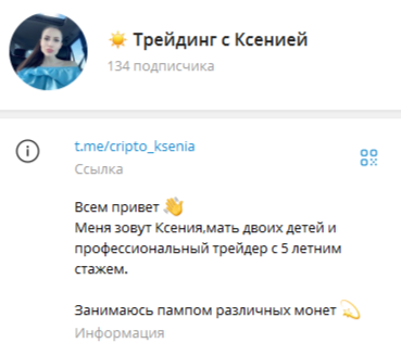 Лишь в описании канала указывалось, что она занимается пампом различных монет. Но больше никакой конкретики нет. В блоге трейдер не стала раскрывать подробности о своем методе работы и объяснять пользователям, что от них требуется.