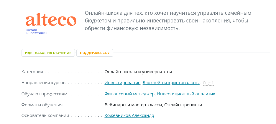 Школа инвестиций Alteco – это официально зарегистрированный бизнес с образовательной лицензией, что отличает его от анонимных скам-проектов. Александр и Ксения Кожевниковы не скрывают лиц и ведут деятельность в правовом поле РФ. Однако их методы продвижения и качество контента вызывают немало сомнений и скепсис у профессионального сообщества: