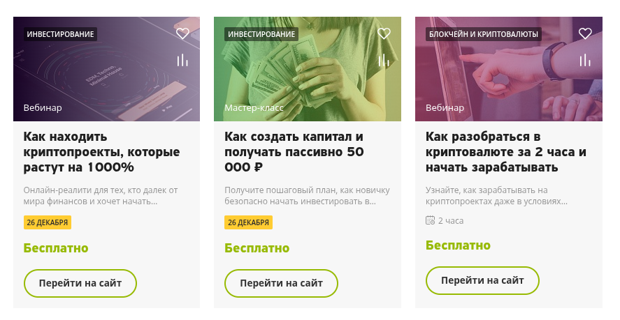 - Вебинар «Как находить криптопроекты, которые растут на 1000%». Обещание найти гемы с доходностью в 10 иксов для новичков – это чистой воды популизм. Такие риски обычно граничат с казино, но авторы подают это как системный навык.
