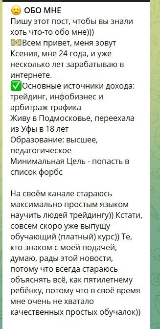 Ксения Росс — профессионал в манипуляциях. Продает обучение и сигналы только для заработка на реферальных подписчиках. Чем больше людей она заманит, тем больше денег получит от их сливов. Никакой безопасности для ваших средств.