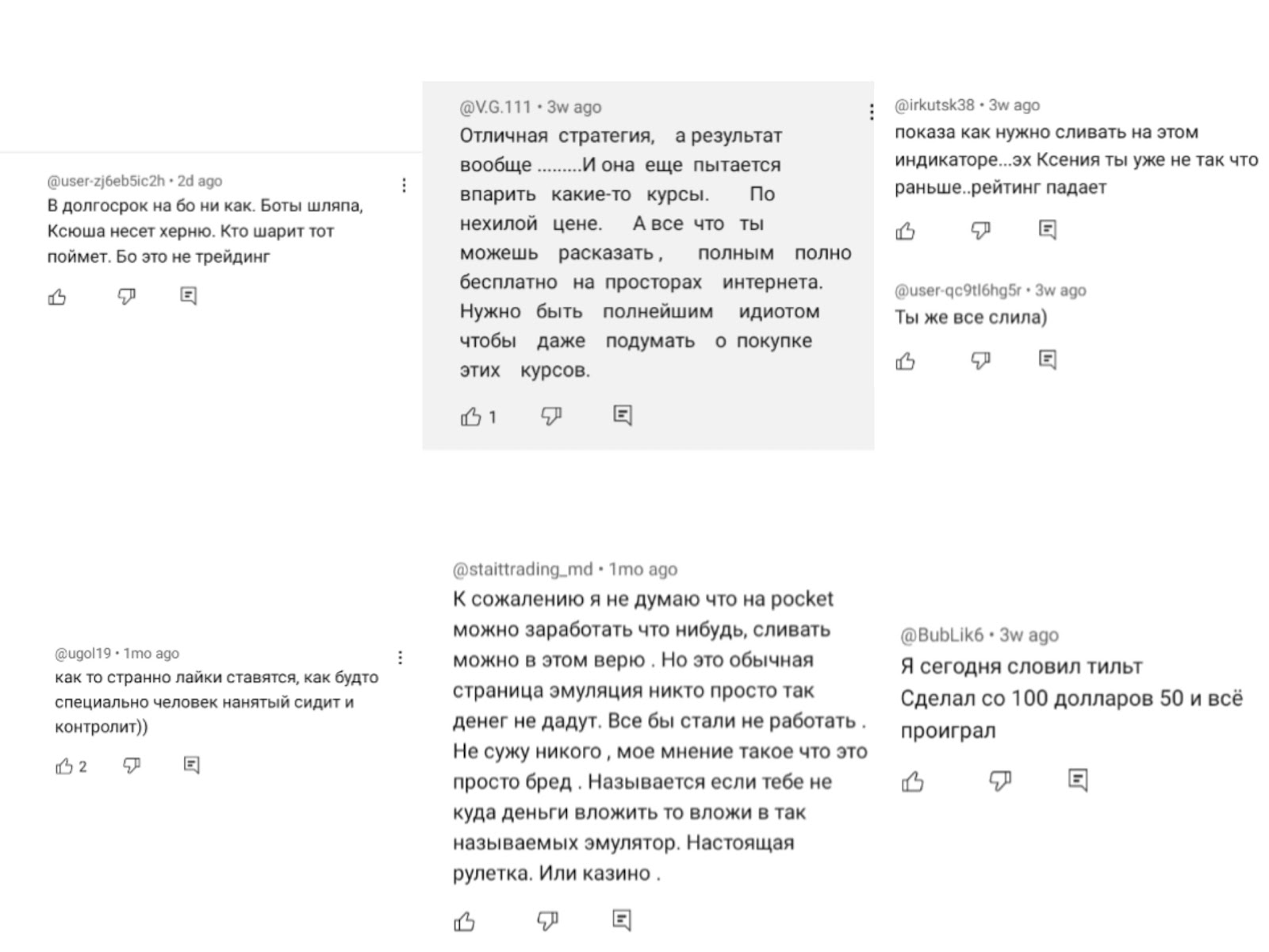 Вступил в клуб Ксении и пожалел, все-таки чувствуется отсутствие опыта в трейдинге, ибо за деньги я читал какой-то беззубый аналитический мусор, увидел кучу сомнительных рекомендаций, непонятных графиков и тд. Не советую этого «трейдера», ничего полезного в её деятельности нет