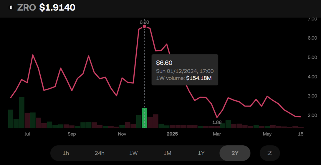На данный момент прогноз ZRO показывает, что определенное время цена токена ZRO будет снижаться, а после этого возможен очередной скачок курса вверх. Сейчас стоимость монеты ЗРО составляет 1,914 доллара. Максимальная цена за ZRO токен была 6,6 долларов. Когда проходил Layer zero листинг, монеты стоила 2,89 долларов. За все время существования, с июня 2024 года, было немало скачков вверх и вниз. Это делает валюту привлекательной для инвесторов и трейдеров, так как позволяет зарабатывать на колебаниях.
