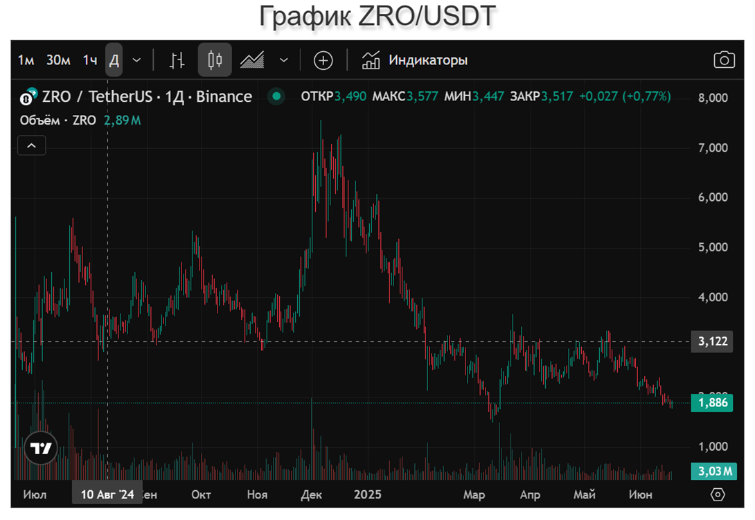 В последнее время наблюдается постепенное снижение цены криптовалюты ZRO. Эксперты предполагают, что это временный эффект. В долгосрочной перспективе можно ожидать рост на 15% и более. Прогнозы криптовалюты ZRO во многом зависят от популярности и перспективности проекта «Лайерзеро». Пока удается поддерживать востребованность. Часть людей до листинга думала, что Layer zero – скам, но практика показывает, что монета является настоящей.