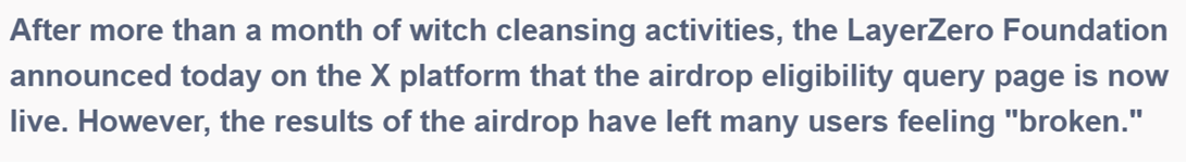 Claim Layerzero прошел в июне 2024 года, что связано с выпуском монеты на бирже. В некоторых случаях подключалась ручная модерация для распределения средств. Также на аккаунтах с подозрительной активностью ограничивали получение монет. Всем пользователям, которые хотели получить ЗРО коин в рамках аирдропа, нужно было привязывать свой кошелек и регистрировать его в системе.