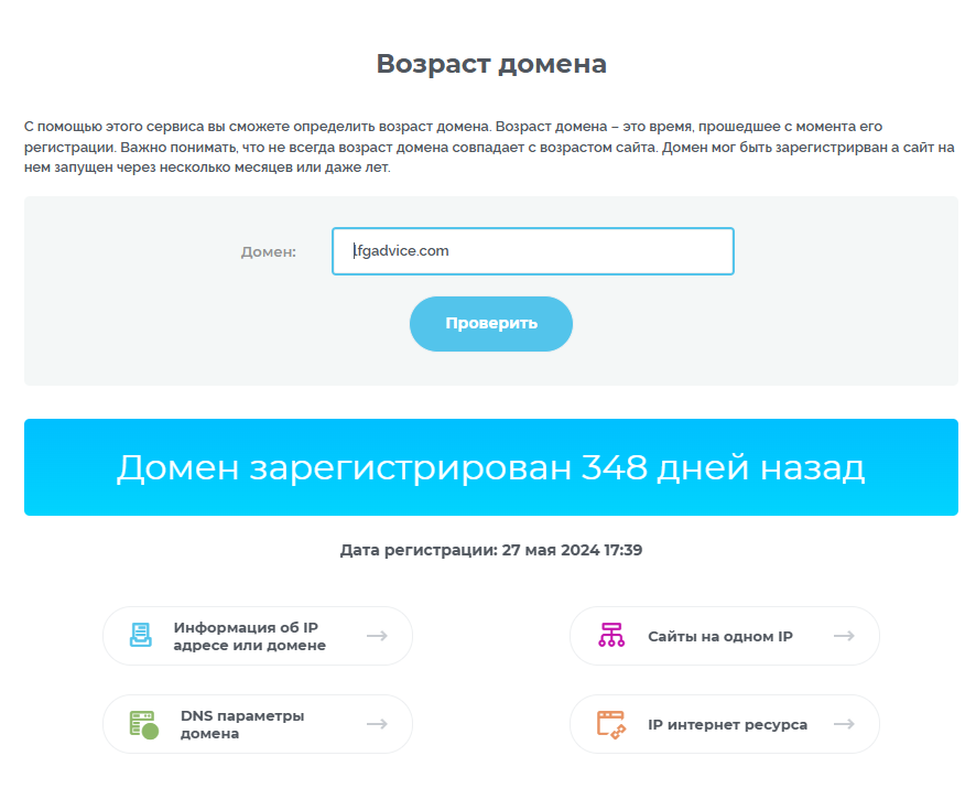 Домен сайта был зарегистрирован только в конце мая 2024 года.