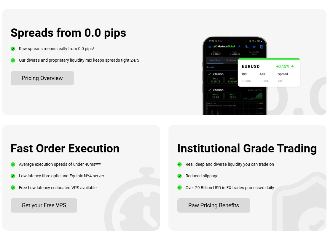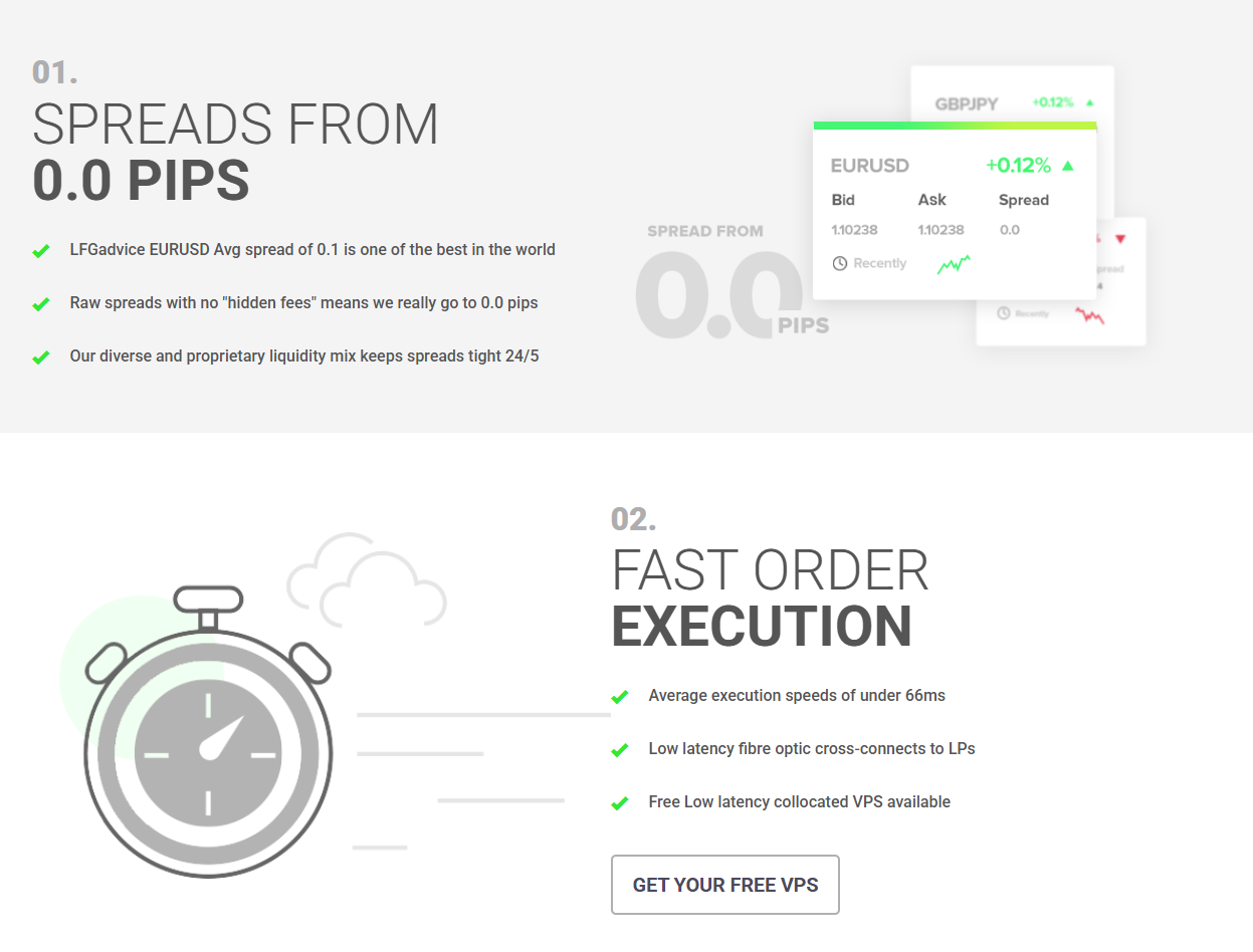 Более того, адрес, указанный на сайте тоже принадлежит этой компании. Содержание веб-страниц, по большому счету, копируют содержание страниц официального сайта icmarkets-global com за тем исключением, что они выполнены в конструкторе. Так выглядят преимущества, указанный на lfgadvise com: