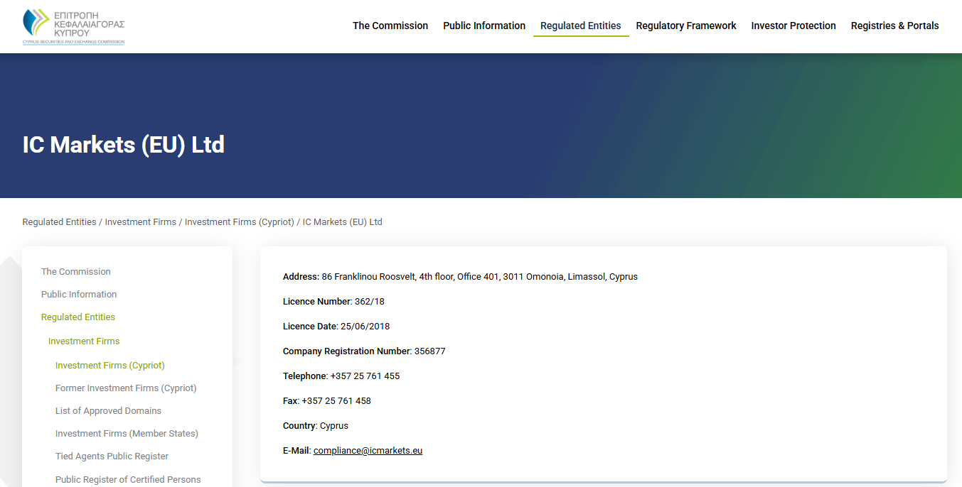 Проверка лицензии показала, что этот номер принадлежит другой компании – IC Markets LTD: