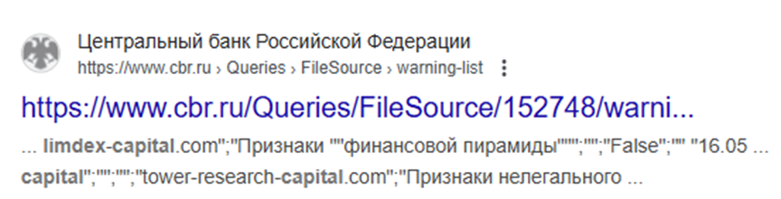 К тому же, Limdex capital занесена в реестр Центробанка как финансовая пирамида.