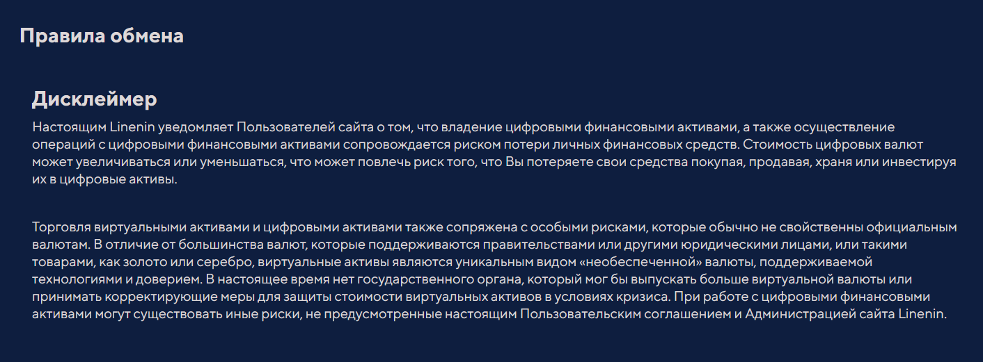 По итогам обзора мы не можем рекомендовать криптообменник Linenin к использованию по следующим причинам: