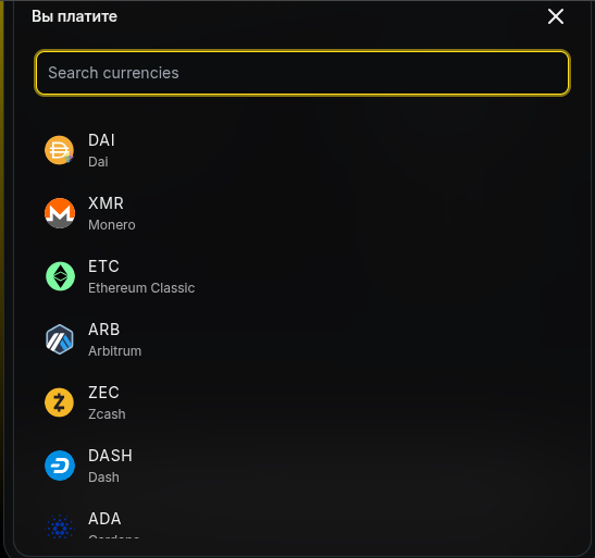 На сайте обменника Linocoin com надо выбрать подходящую для себя криптовалюту или стейблкоин. Покупать и продавать можно Bitcoin, Ethereum, Litecoin, ZCash, DASH и еще чуть больше 6 монет. Касательно стейблкоинов, то доступны USDT, USDC, DAI.