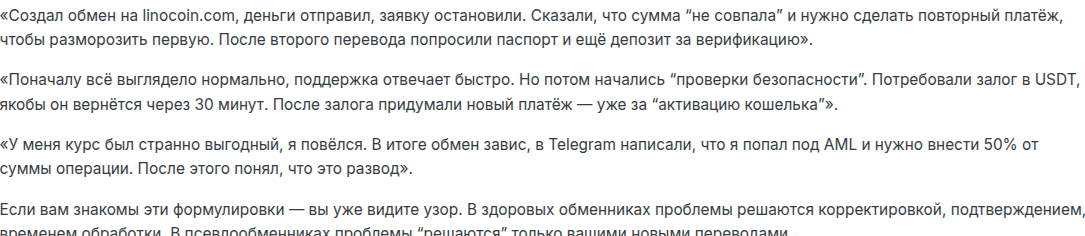Отзывы об обменнике Linocoin com