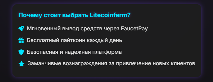 • возможность получать Litecoin ежедневно;