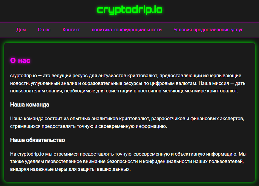 Команда cryptodrip io предлагает для своих клиентов пассивный фарминг криптовалюты. В составе команды есть финансовые эксперты, аналитики криптовалют и опытные участники рынка, которые предоставляют пользователям актуальную информацию о заработке Litecoin.