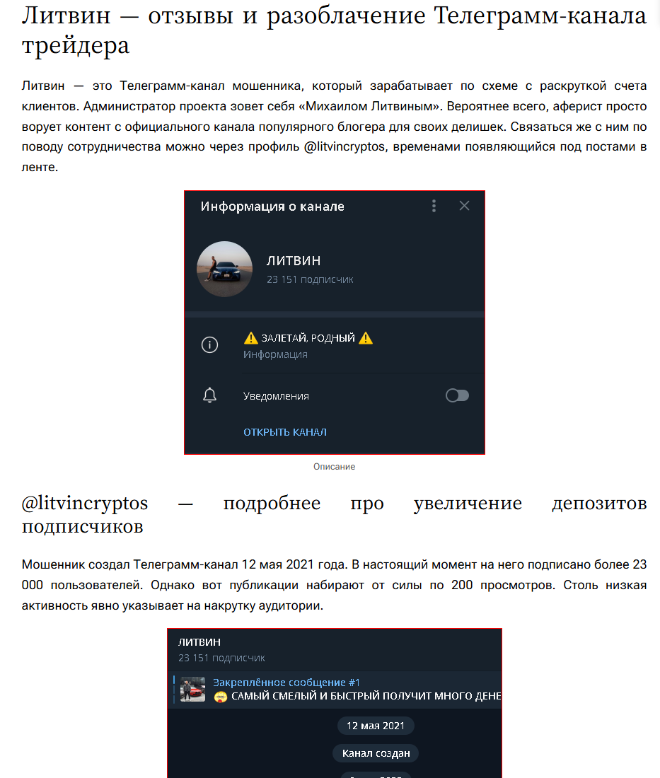 Правда о телеграмм-канале «Литвин»: отзывы о LitvinCryptos и проверка работоспособности «Литвин бот» в тг