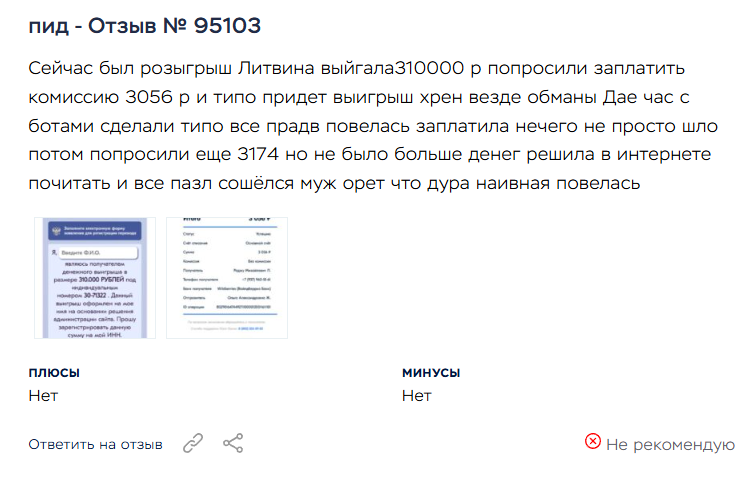 Некоторые трейдеры прямо указывают на развод и мошенничество со стороны автора. В отзывах сообщают, что после взаимодействия с «Литвин бот» в тг вывести прибыль не получилось. Программа постоянно предлагала заплатить комиссию и блокировала снятие средств.