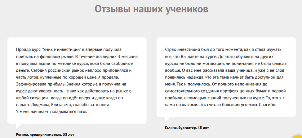 На сайте “Школа Биржевого Серфинга” есть десятки положительных отзывов, рассказывающих о том, как Людмила перевернула жизнь учеников. Все, кто проходил обучение, еще до завершения курса заработали приличную сумму на трейдинге, ни один инвестор не ушел в минус.