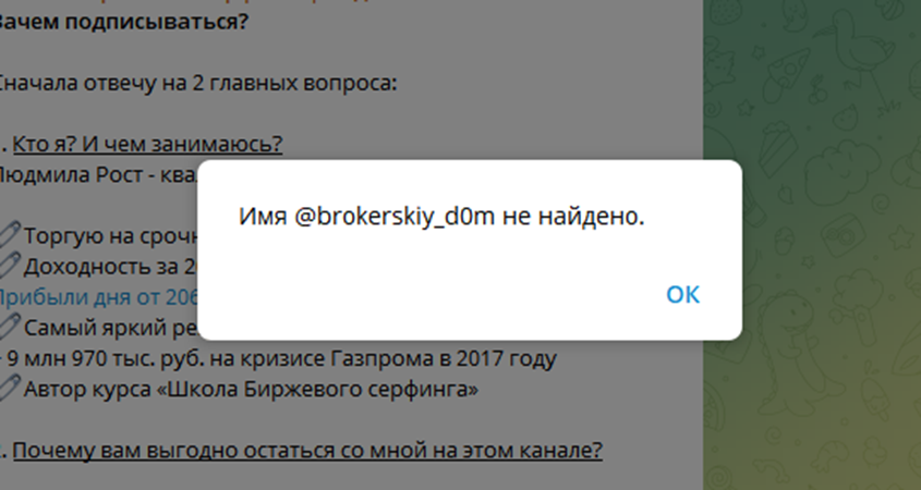 На сайте образовательной школы указан контактный телеграмм-профиль Brokerskiy D0m. Но такого аккаунта нет в мессенджере, и это также нельзя записать в плюсы к деловой репутации.