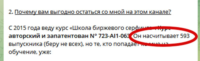 Аналогичная ситуация и с количеством реальных выпускников, то их больше 1000, то всего 593. Есть претензии и к авторскому патенту. Номер, указанный в телеграм-канале, не пробивается системой ФИПС.