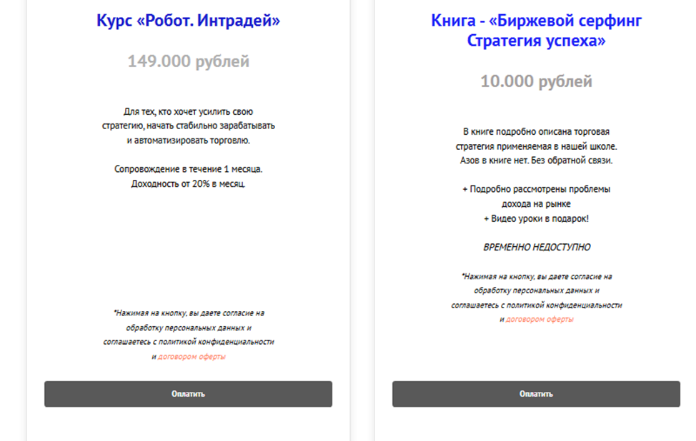 Ранее в “Школе Биржевого Серфинга” было на порядок больше тарифных планов, цены были выше. Вероятно, либерализация ценовой политики связана с отсутствием интереса потенциальных клиентов к услугам наставника.