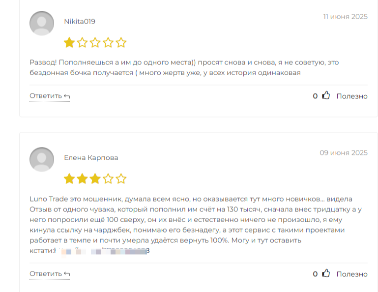 Отзывы о проекте Luno Trade