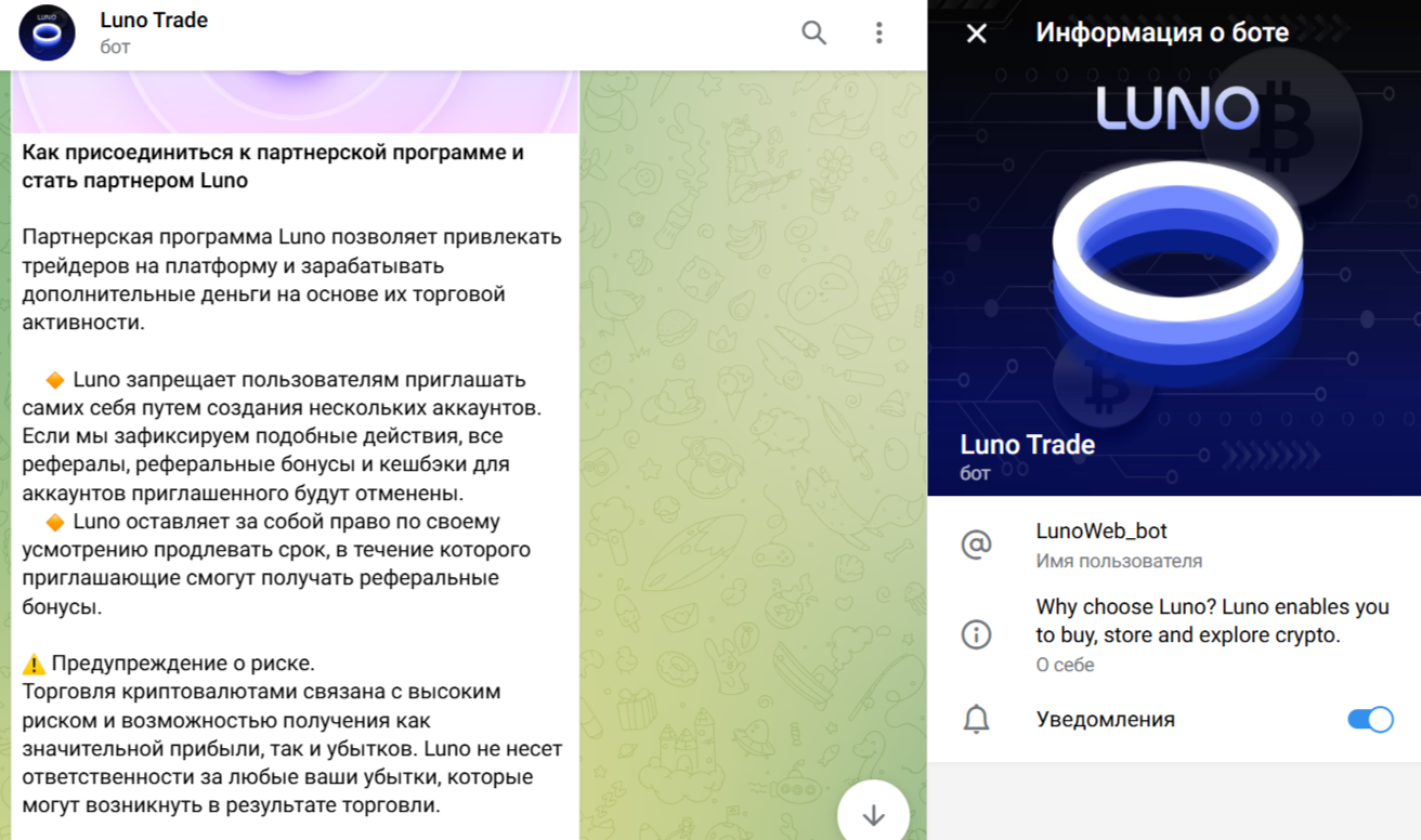 Обзор бота Luno Trade Telegram