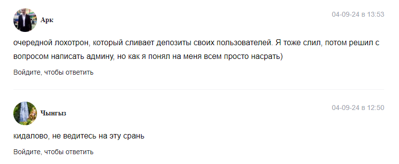 На русскоязычных платформах дела обстоят иначе. Тут проект обычно ругают и называют скамом и лохотроном, утверждают, что их депозит был слит.