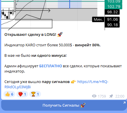 Рекомендовать сделки по сигналам трейдера мы можем, но только при особой осторожности, ведь риск и так высок, а тут еще и анонимный админ, обещающий почти 100% верняк. Не было бы вопросов, в случае с солидным прайсом за такие услуги, это привычно и нормально в жестоком капиталистическом мире.