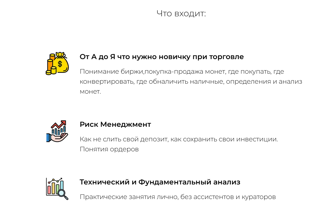• технический и фундаментальный анализ — Макар проводит лично практические занятия с учениками;