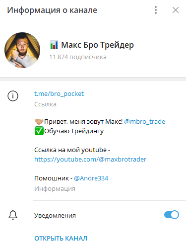 Помимо канала в Телеграме, Макс ведет еще и блог в Ютубе. Там он рассказывает о своих достижениях. Описывает базовые сведения о бинарных опционах, которые новички могут сами найти через поисковые системы.