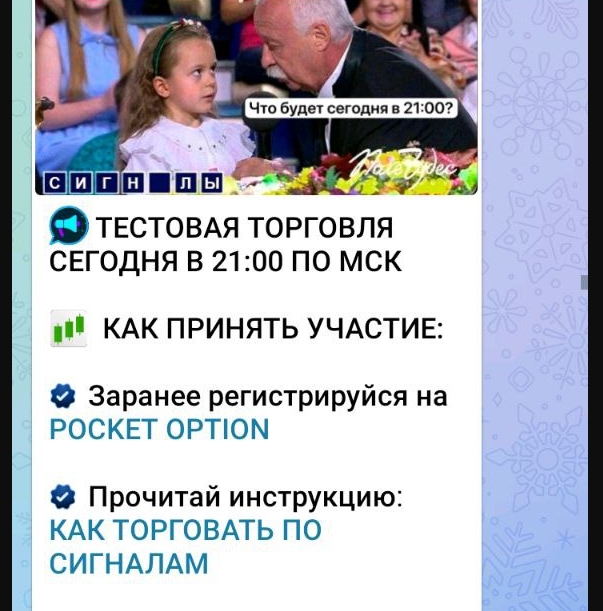 В закрепе на канале есть приветственное видео, в котором Макс представляется, однако более о нём никаких данных нет – является ли от профессиональным трейдером с наличием аттестата или любителем, который решил подзаработать на платных сигналах. На канале проходит одна бесплатная тестова торговля в день 3 раза в неделю. Обязательное условие Макса – регистрация по его реферальной ссылке на площадку Pocket. В своём видео Макс раскладывает по полочкам как работает реферальная система и объясняет, в чём его интерес привлечения рефералов.